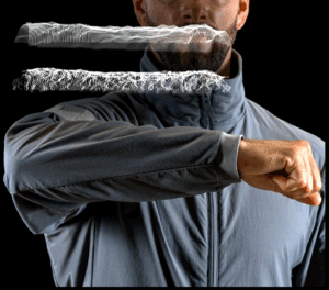 Hengittävä, kosteutta siirtävä ja lämpöä pitävä suoja.