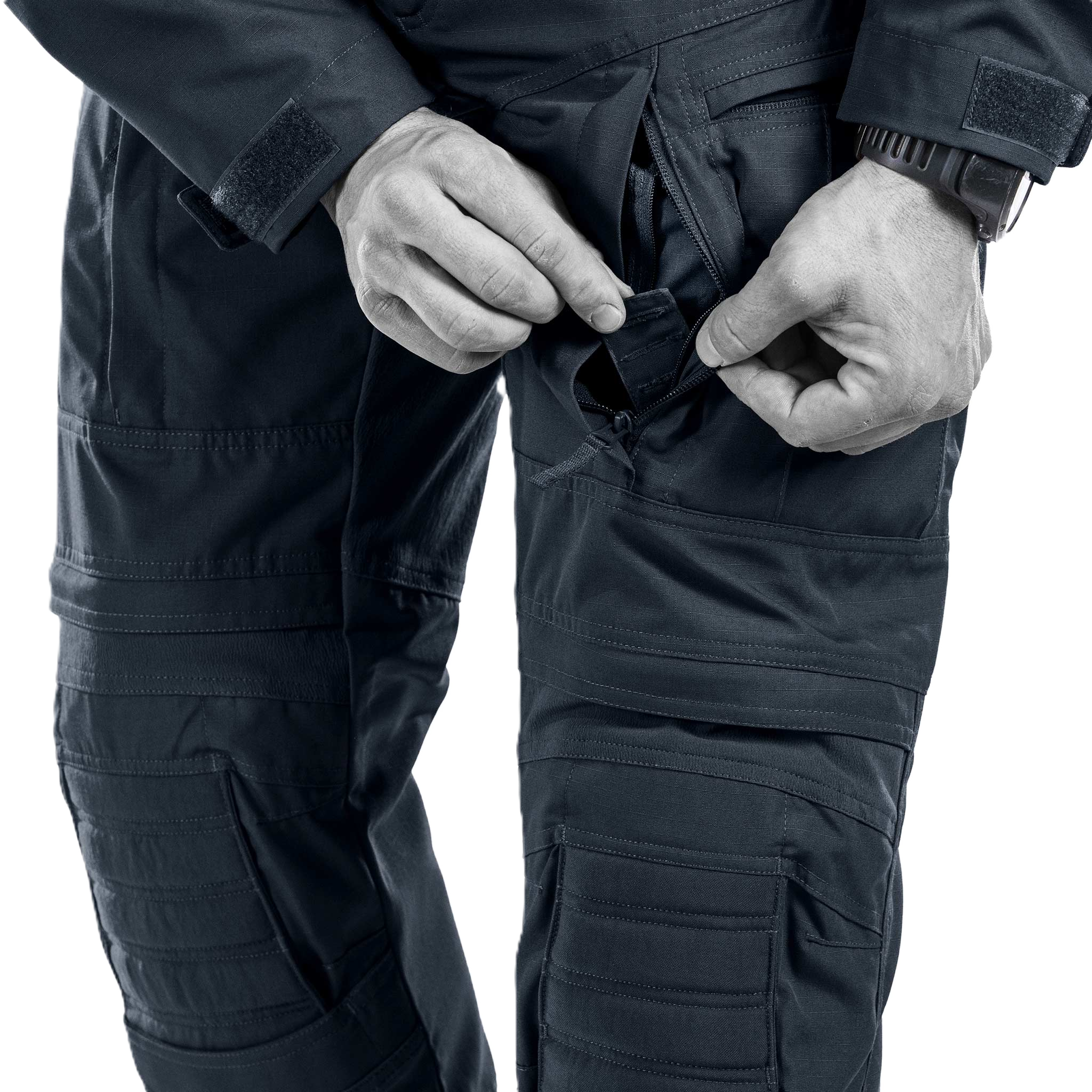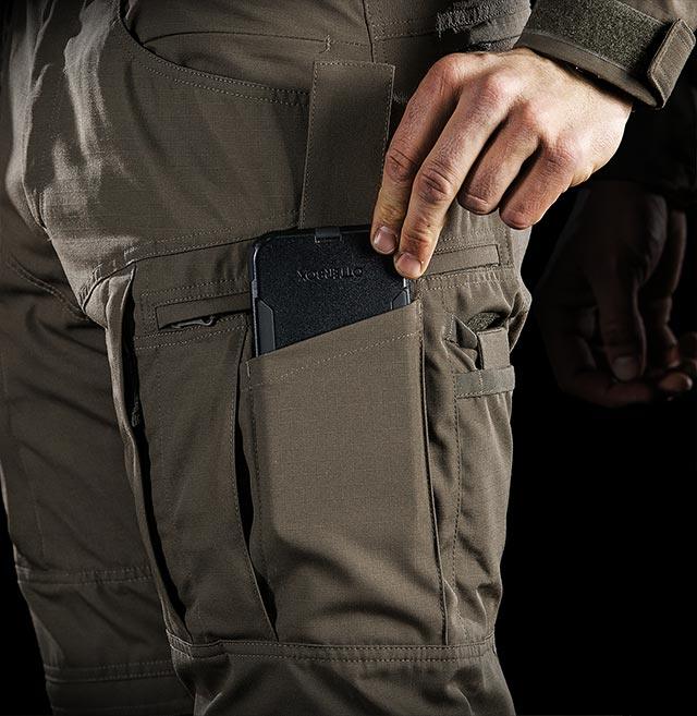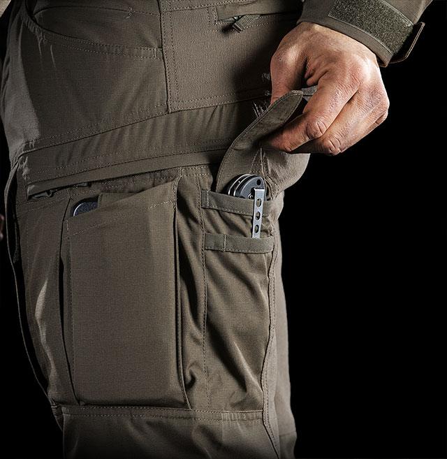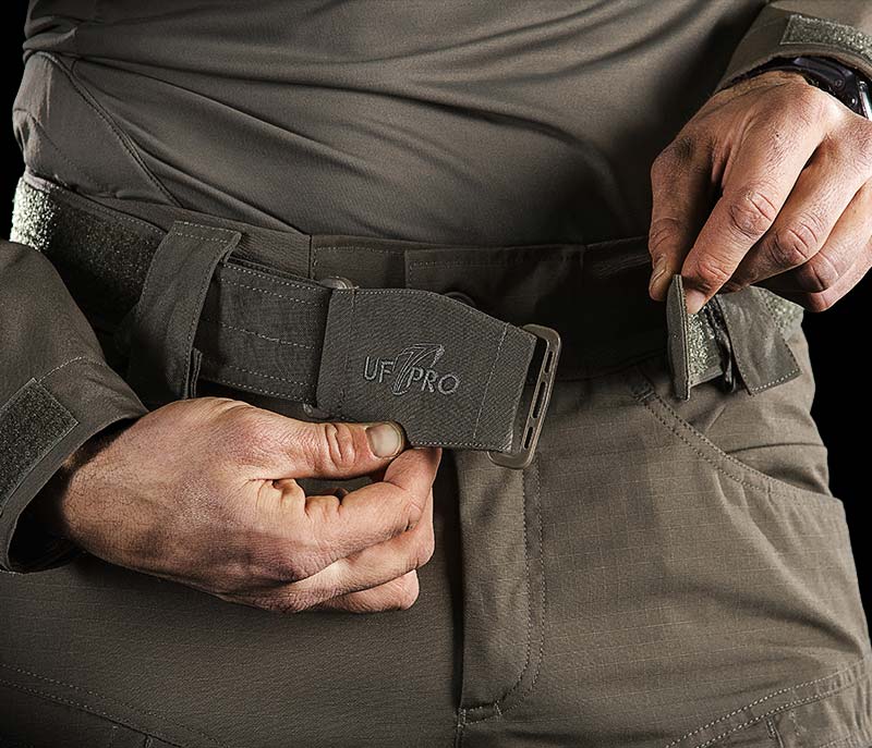 Integroitu alusvyö lukitsee housut paikoilleen ja estää niitä liukumasta alas tai ylös. Se varmistaa, että ne seuraavat jokaista liikettäsi riippumatta siitä, kuinka haastava tehtävä on edessäsi.