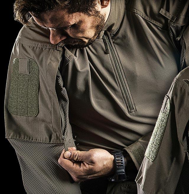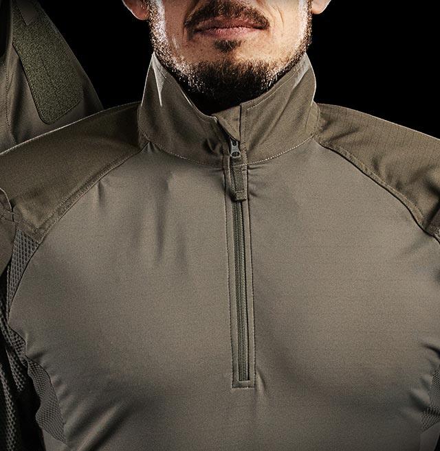 Hybridimateriaalin ansiosta kehon lämpötila säätyy tehokkaasti ja käyttömukavuus on taattu koko päiväksi. Lisäksi tässä taistelupaidassa on yksityiskohtia, jotka parantavat suorituskykyäsi operaattorina.