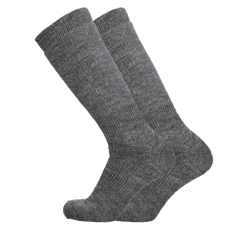 Tämä pohjepituinen, paksu, kauttaaltaan merinovillafroteinen sukka on suunniteltu taistelemaan kylmyyttä vastaan ja pitämään jalat lämpiminä koko päivän. Sukan muotoon neulottu kantapää parantaa istuvuutta ja vahva elastaanineulos koko sukan varren mitalla tasoittaa paineen tuntua jalalla.
