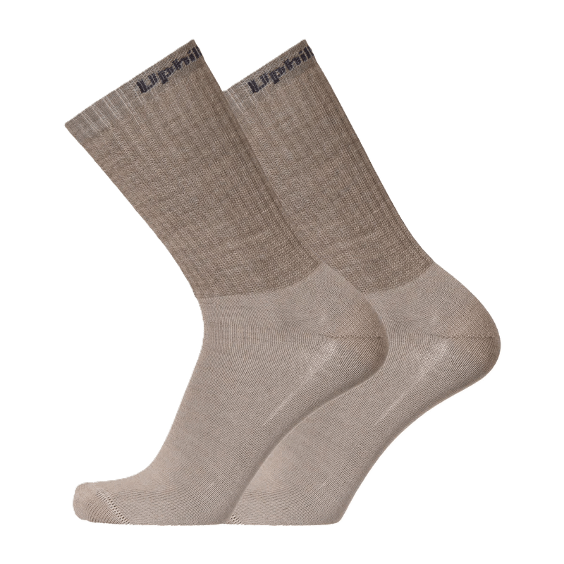 Yksivärisien sukkien suuaukon ulkopuolelle on neulottu Uphill Combat -teksti. Varsi on normaalin urheilusukan varren mittainen ja hyvin joustava.