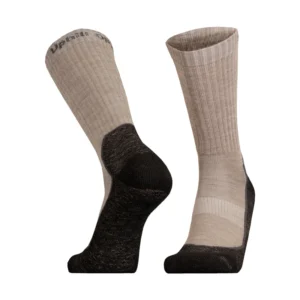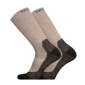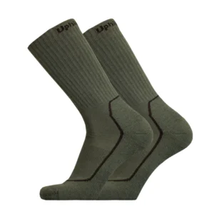 Taktiset merinovillasukat vaativiin ja muuttuviin olosuhteisiin. Sukanvarren resoritaitoksen taakse on neulottu Uphill OPS -teksti.
